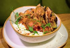 Сочное и нежное мясо в сочетании с хрустящими баклажанами. Всё это дополняет мягкий мусс из феты, придающий блюду сливочный и насыщенный вкус. Простое и очень вкусное сочетание!