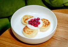 250 г • Блюдо, которое может вернуть вас в детские воспоминания! Классические творожные сырники подаем с вишнёвым конфитюром и сметаной.