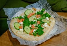 Лосось слабосолённый, кремчиз, рукола, огурец