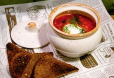 Домашний, наваристый борщ в горшочке подаём с чесночными гренками