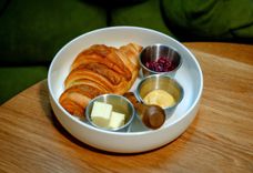 160 г • Фирменный завтрак в котором вы можете прочувствовать атмосферу улочек Парижа. Свежий круассан, сливочное масло, лимонный курд и вишнёвый конфитюр
